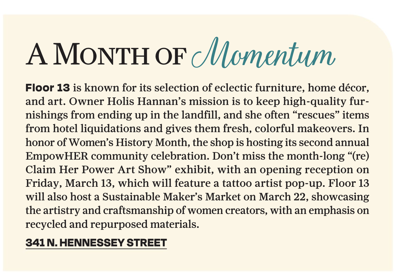 Huge thank you to The Pearl, Gambit, and Times Picayune for the EmpowHER shoutout in the New & Now section of the March edition of The Pearl.